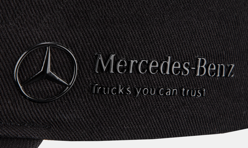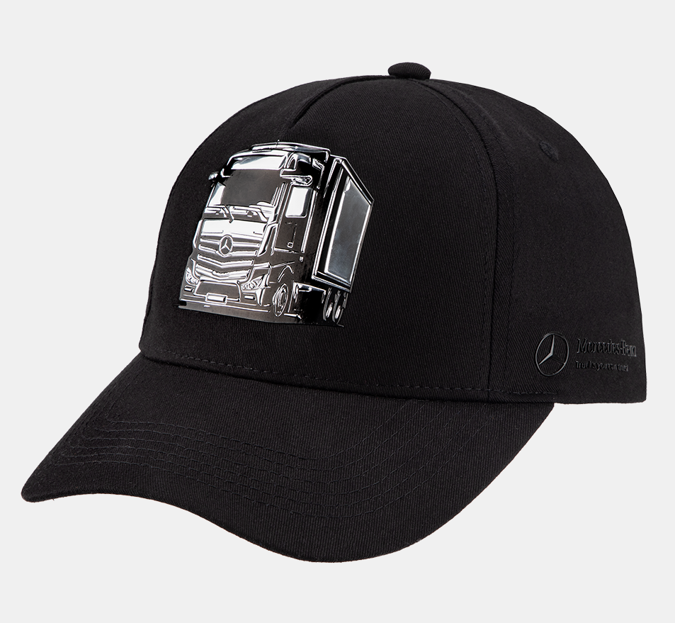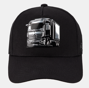 Schwarze Cap mit einer silberner Truck-Grafik auf der Vorderseite.