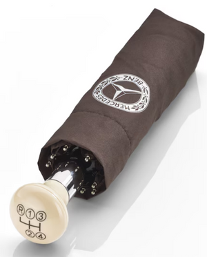 Singing in the rain! Mit dem braunen Mini-Taschenschirm wird selbst nasses Regenwetter zum puren Vergnügen. Der Schirm mit Griff in Schaltknaufoptik des 300 SL präsentiert sich als praktischer Handöffner und lässt sich aufgrund seiner kompakten Maße spielend leicht verstauen. In geöffnetem Zustand besitzt der Schirm einen Durchmesser von ca. 97 cm und bietet mit seinem Polyester-Pongee-Bezug inkl. wasser- und schmutzabweisender Spezialbeschichtung zuverlässigen Schutz vor Nässe. Auch Wind kann dem Taschenschirm dank Windproof-System und hochwertigen Fiberglas- und Metallschienen so schnell nichts anhaben. Ein Sicherheitsschieber, das farblich passende Futteral, ein Schließband mit verchromtem Druckknopf sowie verchromte Nickelspitzen runden die Ausstattung ab. Für optische Akzente sorgen ein Bornemann Weblabel sowie der silberfarbene Druck auf einem Keil sowie dem Futteral.