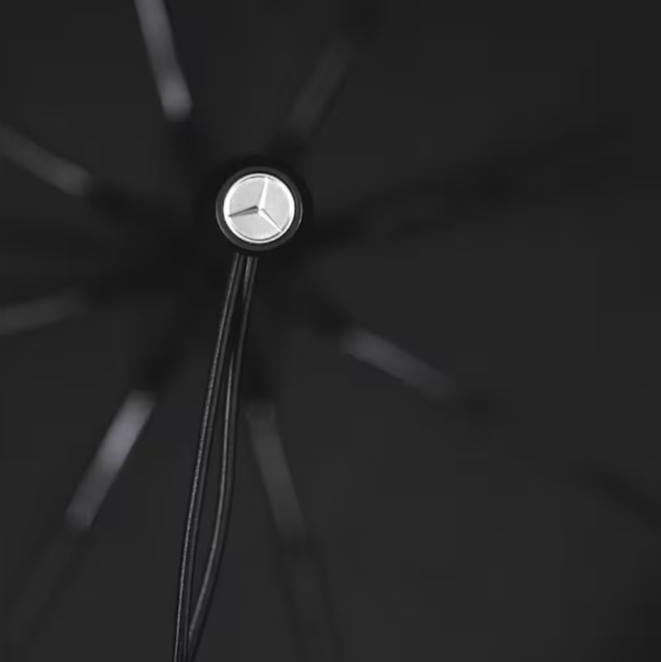 Passt in fast jede Tasche: der praktische Doppelautomatik-Taschenschirm mit passendem Futteral. Der schwarze Schirm mit verchromtem Stahlstock und 4C-Heatprint-Logodruck präsentiert sich als „Windproof“-Ausführung und verfügt über eine wasser- und schmutzabweisende Spezialbeschichtung. Der mit einer schwarzen Auslösetaste versehene 8-teilige Schirm liegt dank des Kunststoffgriffs in ikonischem Design mit eingelegter silberfarbener 3D-Sternplakette sicher in der Hand. Eine schwarze elastische Trageschlaufe rundet die Ausstattung ab.