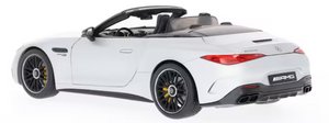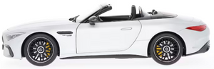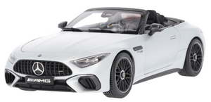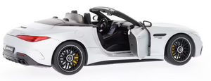 SL 63 Exterieur und Interieur, LED Intelligent Light System, AMG Performance Sitz, 12,3 Zoll großes Kombiinstrument, 11,9 Zoll großes Zentraldisplay, flächenbündige Türgriffe oder 21 Zoll AMG Schmiederäder im Kreuzspeichen-Design: Der neue Mercedes-AMG SL präsentiert sich nicht nur sportlich, sondern lässt auch in puncto Ausstattung keine Wünsche offen. Als Miniaturmodell bereichert der 2+2-Sitzer eine jede Sammlung und überzeugt durch Detailtreue. So ist der Roadster aus Zinkdruckguss mit Kunststoffteilen nach den original CAD-Daten gefertigt und im authentischen Farbtob lackiert. Zudem weist er eine originalgetreue Darstellung sämtlicher Interieur Details auf. Türen, Motorhaube und Heckklappe des Modells lassen sich öffnen und auch an ein separat beigelegtes Softtop-Verdeck wurde gedacht. Das Modellauto wird in einer Mercedes-AMG Verpackung geliefert, der ein Schraubendreher zur leichten Entnahme sowie ein Handschuh zum Schutz vor Fingerabdrücken auf der Verglasung oder der lackierten Karosserie beiliegen.