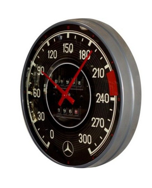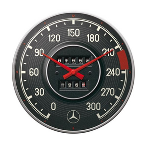 Die Mercedes-Benz Wanduhr Tacho vereint anspruchsvolles Design mit hochwertiger Verarbeitung und setzt in jedem Raum stilvolle Akzente. Mit ihrem klassischen Metallrahmen und der stabilen, gewölbten Glasfront wird die Uhr zu einem echten Designerstück. Der Durchmesser von 31 cm und die Tiefe von 5,5 cm machen sie zu einem markanten Blickfang. Die weißen Ziffern und der elegante Stern auf dem Zifferblatt verleihen der Wanduhr eine zeitlose Eleganz. Beachten Sie bitte, dass dieser Artikel in einigen Ländern der EU nicht verfügbar ist.