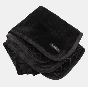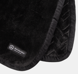 Superweiche Fleecedecke mit gezacktem Muster auf der einen und glatter Oberfläche auf der anderen Seite. Das Mercedes-Benz Trucks Logo befindet sich auf einem aufgenähtem Weblabel.