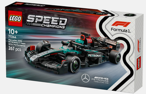 Mit den LEGO Speed Champions Sets können Motorsportfans Modelle einiger der legendärsten Rennwagen der Welt bauen. Das Modell des F1-Rennautos hat ein Cockpit, das sich mithilfe eines Halo-Bügel öffnen lässt, einen Heckflügel, einen Querlenker, Sponsorenaufkleber und breitere Hinterreifen mit dem Aufdruck „Pirelli“. Mit zum Set gehört eine Minifigur im Rennoverall des Mercedes-AMG PETRONAS F1 Teams. Dazu trägt der Rennfahrer einen Helm und passt damit perfekt ins Cockpit, um an spannenden Rennen teilzunehmen.