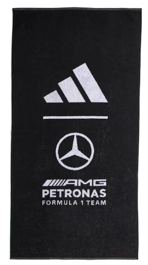 La funzionalità pratica incontra il design sportivo: realizzato in puro cotone, questo telo da doccia e da spiaggia non solo è estremamente confortevole sulla pelle, ma il suo design in bianco e nero è anche un tocco di stile in spiaggia, in piscina o durante l'attività sportiva. L'asciugamano presenta non solo il logo adidas, ma anche quello del team di Formula Uno Mercedes-AMG PETRONAS, portando lo spirito del motorsport nella vita di tutti i giorni.